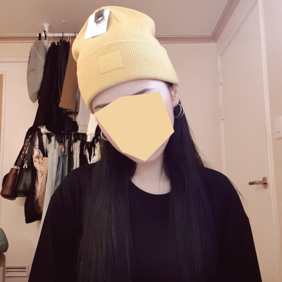솔직히 사진보다 실물로 볼 때 착용컷이 개인적으로더 괜찮아 보였는데 사진으로는 이정도 밖에 표현을 못하겠다. 블랙, 옐로우가 제일 피부톤에 잘 받는 것 같아서 구매했고 핑크,베이지 컬러도 있었는데 얼굴빛에 잘 안맞아서 패스. 유행도 안타고 부담없이 손쉽게 자주 쓰고 다닐 아이템으로 꽤나 적격인 것 같다.